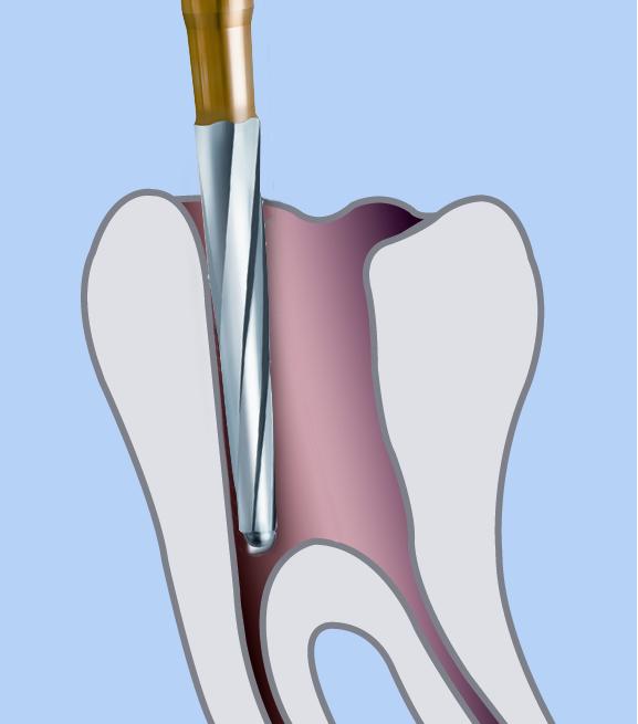 Met Gates Glidden Drills kunnen de kanaalingangen worden opengelegd.