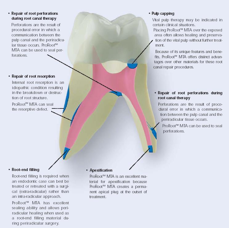 MTA  is een cement wat kan worden gebruikt voor de volgende doeleinden: