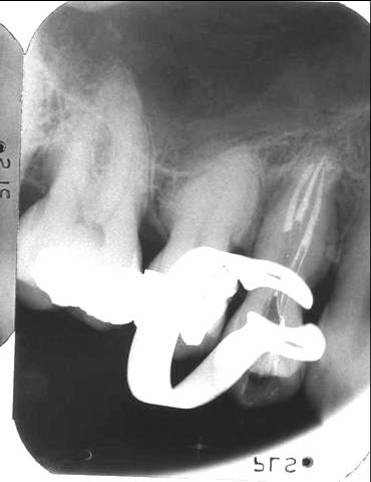 Vrijwel altijd is er sprake van ovale kanalen in bucco-linguale richting welke daarom moeilijk op een X-foto te zien zijn. Soms lijkt het kanaal op 4 a 6 mm vanaf de apex dicht te zitten. Ook op de X-foto is dan geen kanaal te zien. Hier is vaak sprake van een splitsing in meerdere kanalen. Als het coronaire deel goed gereinigd is, valt met de OPMI te zien of er een splitsing aanwezig is en in welke richting de kanalen lopen. Als tussentijds CA(OH)2 is ingesloten lichten de gesplitste kanaalingangen heel mooi op. Ook bij het vullen van dergelijke kanalen is een OPMI onontbeerlijk (zie X-foto).